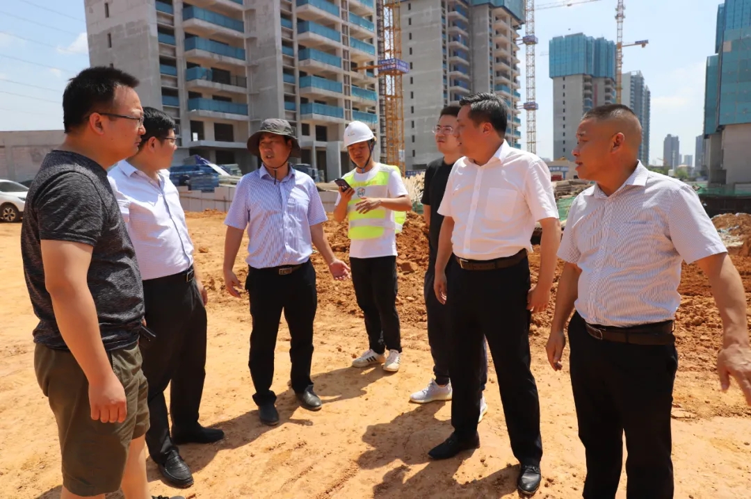 萬寶新區(qū)黨委副書記、管委會主任肖雄杰(右二),萬寶投資集團總經(jīng)理徐業(yè)波(左二)在現(xiàn)場了解情況,處理施工中遇到的問題。