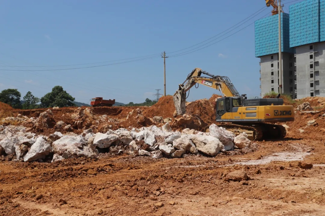 7月14日中午,萬寶新區(qū)黨委副書記、管委會主任肖雄杰,萬寶投資集團總經(jīng)理徐業(yè)波,率項目前期部、工程管理部相關(guān)負責人,冒著酷暑,深入湘中大道與天華路東南角場平工程施工現(xiàn)場,實地解決施工過程中存在的問題和困難。肖雄杰要求,施工方要在確保安全和質(zhì)量的前提下,克服困難,抓緊施工,按時完成施工任務(wù),交付場地。該項目位于湘中大道與天華路交匯處東南角,2020年下半年進場施工,工程造價約380萬,土方挖方工程量約20萬,預(yù)計本周竣工并交付場地。該項目在土方挖掘過程中,出現(xiàn)了土中含有大量石頭的情況,對施工進度產(chǎn)生了一定影響,但是經(jīng)過領(lǐng)導(dǎo)現(xiàn)場調(diào)度、各部門協(xié)調(diào)配合以及施工方全力以赴,仍確保了工程的既定完成時間。